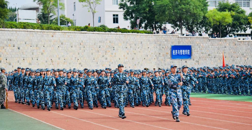清晨6时30分,初升的朝阳微微发着光,伴随着哨声,2019级新生们迅速列队,整齐划一,等待教官发号施令。午时12时,太阳直射最强烈的时刻,新生们无惧刺眼的阳光,昂首挺胸,奋力高喊连队专属口号,“四营一连,智勇双全,逐鹿问鼎,横扫全员”“尖刀二连,文武双全,召之即来,战之必胜”“四营三连,不懈追求,勇往直前,争创一流”“吾有傲骨,立志鸿鹄,四营四连,势可破竹”,口号声声,铁骨铮铮,独一无二,铿锵有力,喊出经管四营独一无二的特色,喊出经管学子势不可挡的气势和决心。下午14时,一天中温度最高的时候,经过短暂的休息,新生们横扫慵懒困顿,迅速恢复状态,投入到新一轮的集训当中。晚21时30分,一整天的军事训练正式结束,再一次随着哨声,新生们井然有序,列队返回宿舍,辛苦的训练过后,新生们脸上挂着疲惫而满足的笑容大步流星而归。