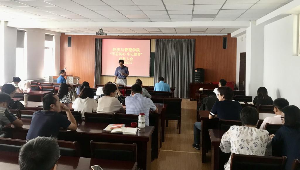 9月17日下午,mg冰球突破豪华版网址于经管楼419召开“不忘初心、牢记使命”主题教育工作会议,安排部署主题教育工作,学院全体教师党员参加会议,会议由党总支书记李德成主持。