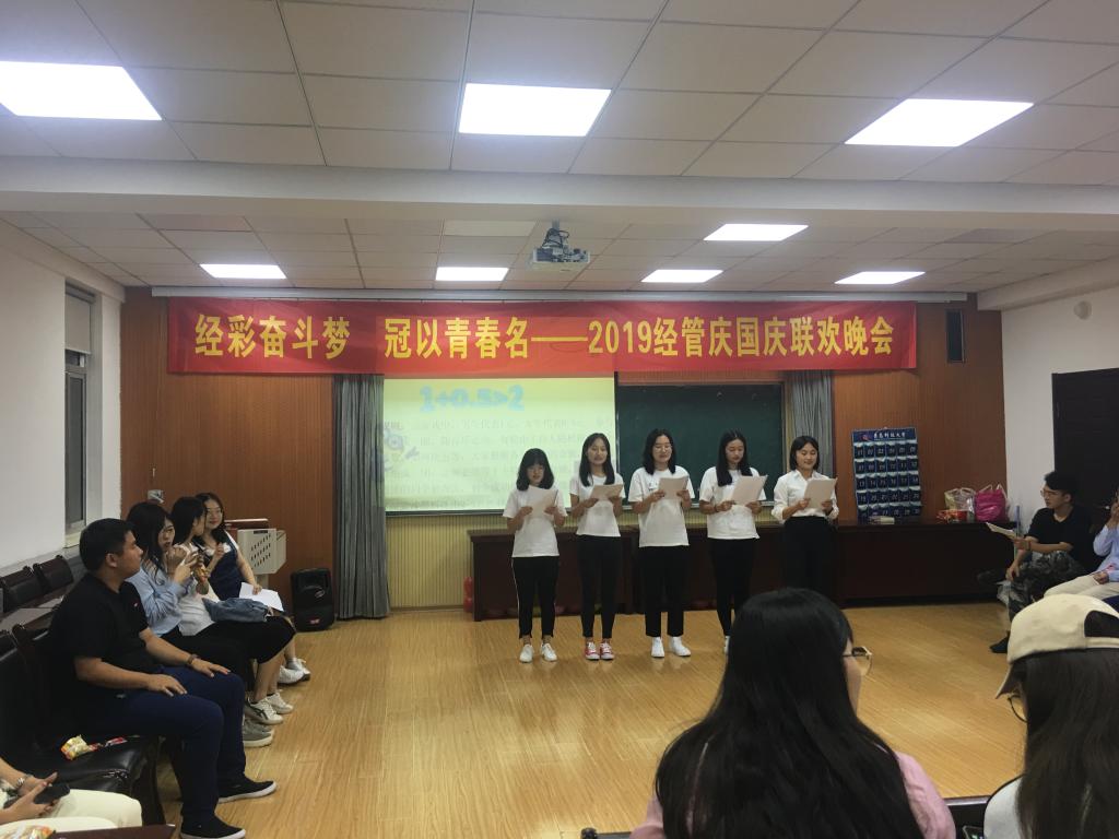 为庆祝中华人民共和国成立70周年,展现当代研究生为梦想实现而奋斗、为青春不悔而努力的爱国精神,9月28日,由mg冰球突破豪华版网址研究生会主办的“经彩奋斗梦 冠以青春名”2019经管研究生庆国庆联欢晚会于经管楼419室举行。mg冰球突破豪华版网址各年级研究生积极参与此次活动。