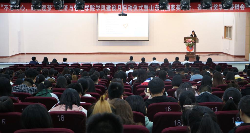 为深入贯彻落实“凝聚人心、完善人格、开发人力、培育人才、造福人民”工作目标,进一步践行“不忘初心、牢记使命”主题教育精神,全面提高人才培养质量,大力培养德智体美劳全面发展的社会主义建设者和接班人,10月12日上午,mg冰球突破豪华版网址于mg冰球突破豪华版网址第二报告厅举行“不忘初心,砥砺逐梦”学风建设月启动仪式暨山东省国家奖学金、省政府奖学金答辩会。mg冰球突破豪华版网址全体专兼职辅导员及大一、大二全体学生参加会议。