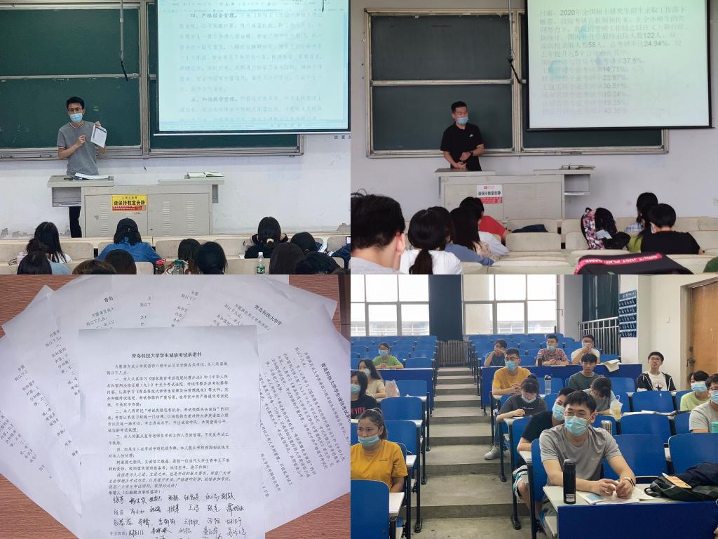 根据常态化疫情防控特殊时期的教学方式、考试形式的新变化,按照《关于做好2020年春季学期考风考纪教育工作的通知》的具体要求,张显全结合往年考试违纪的典型案例,告诫同学们在考试中要严格遵守考场规则,虽然学习形式考试方式会变,但是诚信考试的行为规范永远不会变,要用诚信之心敬畏纪律,敬畏考试,切勿违纪作弊。同时,号召全体同学要倍加珍惜来之不易的战“疫”成果,尽快调整学习状态,努力学习专业知识,以饱满的精气神投入到今后的学习生活中。随后,全体同学认真学习了《mg冰球突破豪华版网址学生纪律处分管理规定》等规章制度中有关组织作弊、替考、考试作弊等违纪处分相关规定,并现场签署了《mg冰球突破豪华版网址诚信考试承诺书》。