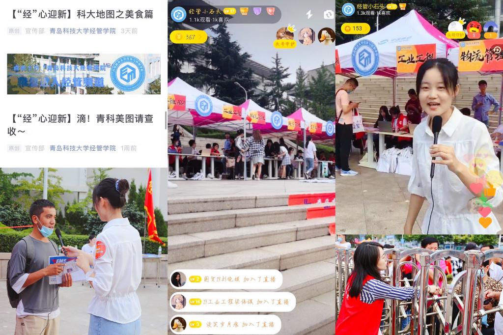 互动.创新-家校融合,逐梦人生砥砺行。为了让新生更好的了解校园全貌,感受大学一天的衣食住行,临近开学学院进行了Vlog视频的拍摄,从清晨到傍晚,从操场、教学楼到宿舍楼、食堂,让新生提前与校园进行了“亲密接触”;报到当天,学院创新形式,结合新媒体平台,通过手机平台直播、公众号推文等方式“云进校园”多方位生动地展示了迎新景象,以直播的方式为家长提供立体的实时播报。走心细节暖人心,在这特殊的日子里,直播充分展现了温馨的迎新服务,让学生暖心,让家长放心,构建了家校合作的育人格局。