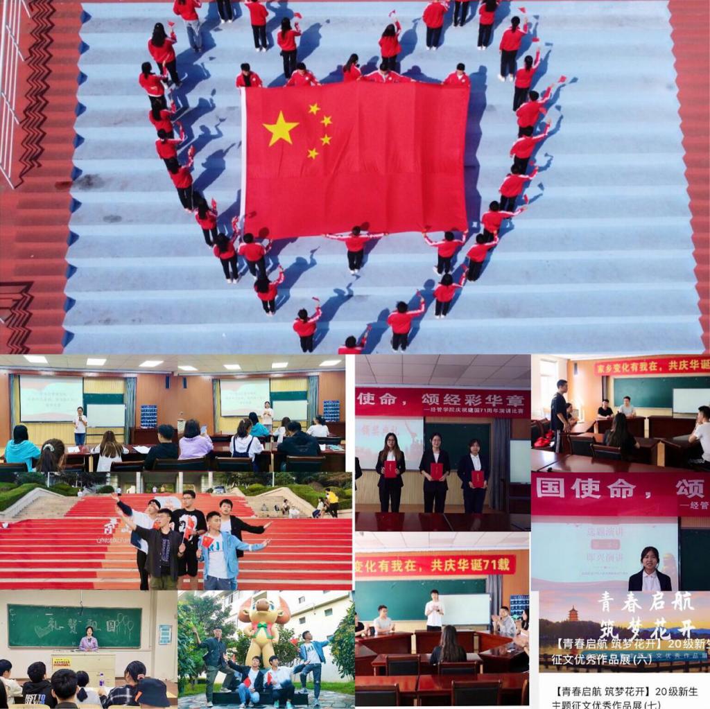 学院组织开展2020级新生开学典礼暨专业教育大会、“七秩芳华一路歌,‘经’彩青春创未来”2020级新生“开学思政课”暨主题教育活动、“青春起航,筑梦花开”新生适应性系列教育、“经管领跑人”经验分享会、专业师生座谈会、少数民族见面会、“青春向上,有梦有young”2020级新生军训教育主题活动、庆校庆系列活动、“青春奋进告白祖国,同心筑梦礼赞时代”庆祝新中国成立71周年主题教育活动、“以家人之名、暖游子之心”庆双节系列活动等,帮助新生树立理想信念,培养专业志趣,提升核心素养,顺利完成角色转变,引导广大新生锻炼身体素质、磨炼坚韧意志的同时,凝聚爱国力量,青春奋斗起航。