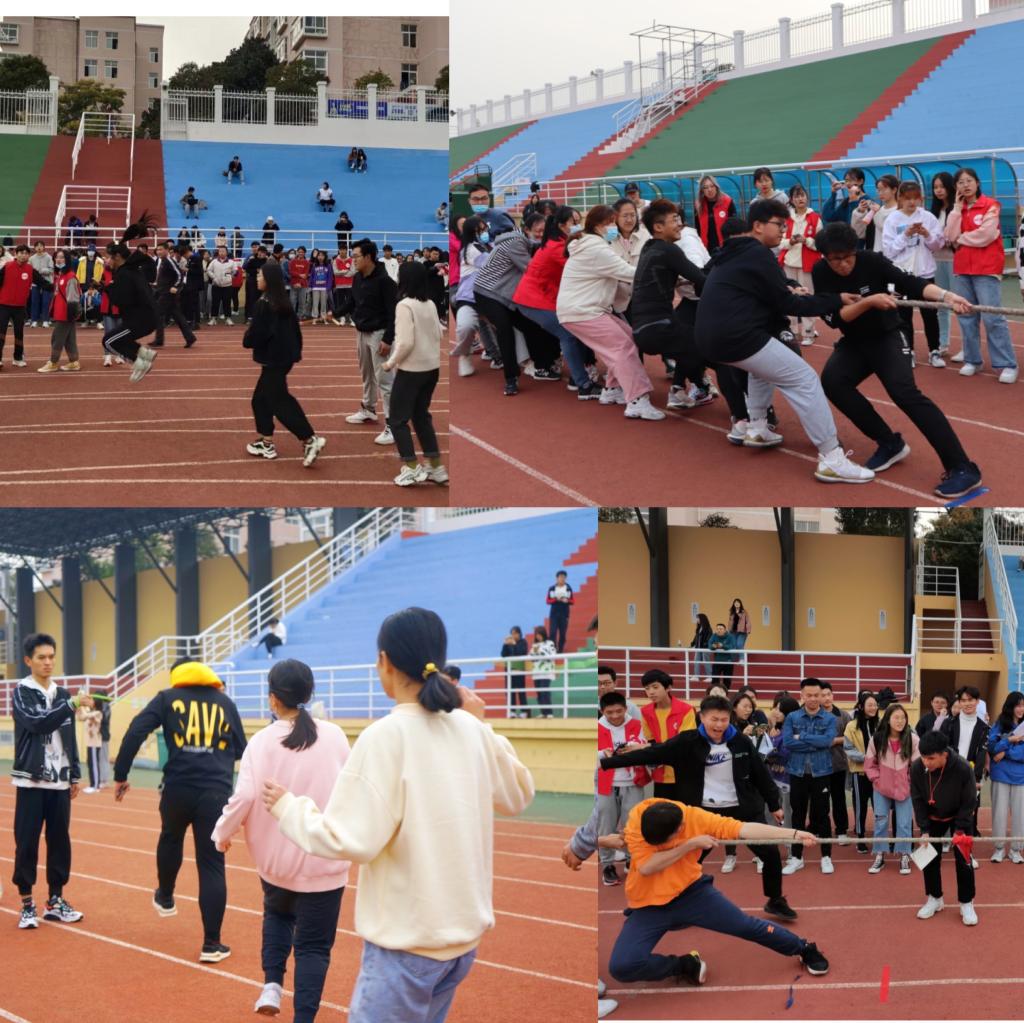 11月1日下午,mg冰球突破豪华版网址于南苑操场举行欢乐跳大绳和拔河趣味运动会活动。学生会指导老师、2018级辅导员高守朋,学生会工作人员和2020级新生全体同学参加。