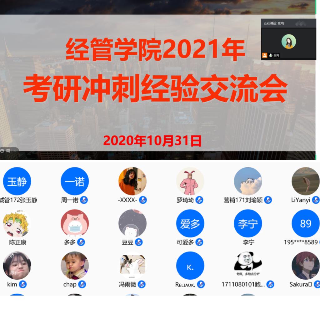 为进一步提高学生的考研热情与考研效率,促进学院学风建设,10月31日下午,mg冰球突破豪华版网址2021年考研冲刺经验交流会于线上圆满举行,百余名17级学生聆听了本次交流会。
