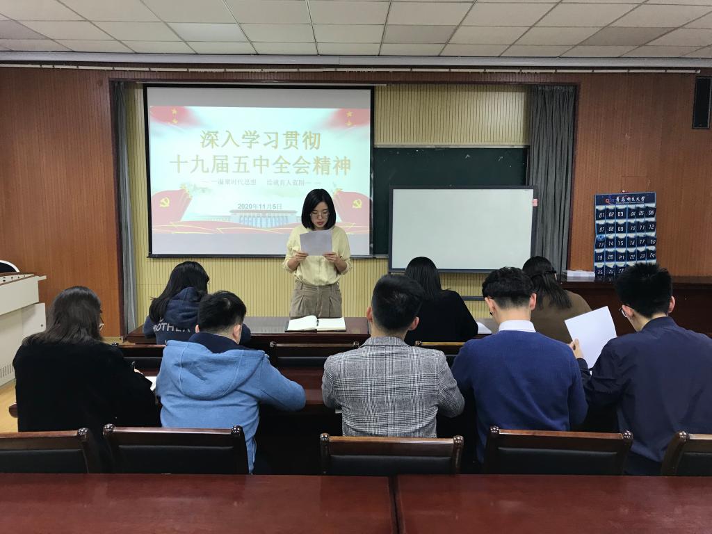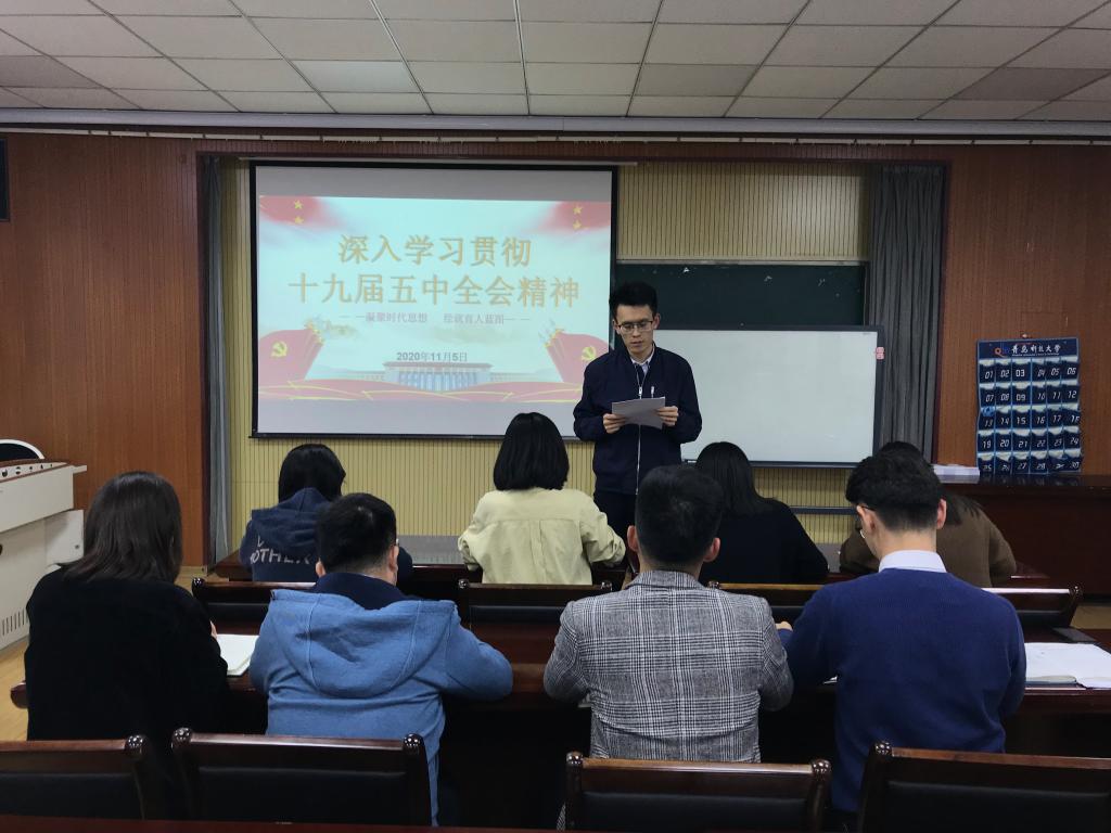 2020年10月5日下午,mg冰球突破豪华版网址学工办、团委组织开展十九届五中全会及团中央书记处会议精神学习,全体专兼职辅导员参加学习,学院团委副书记、学工办副主任王聪、张显全主持并领学。