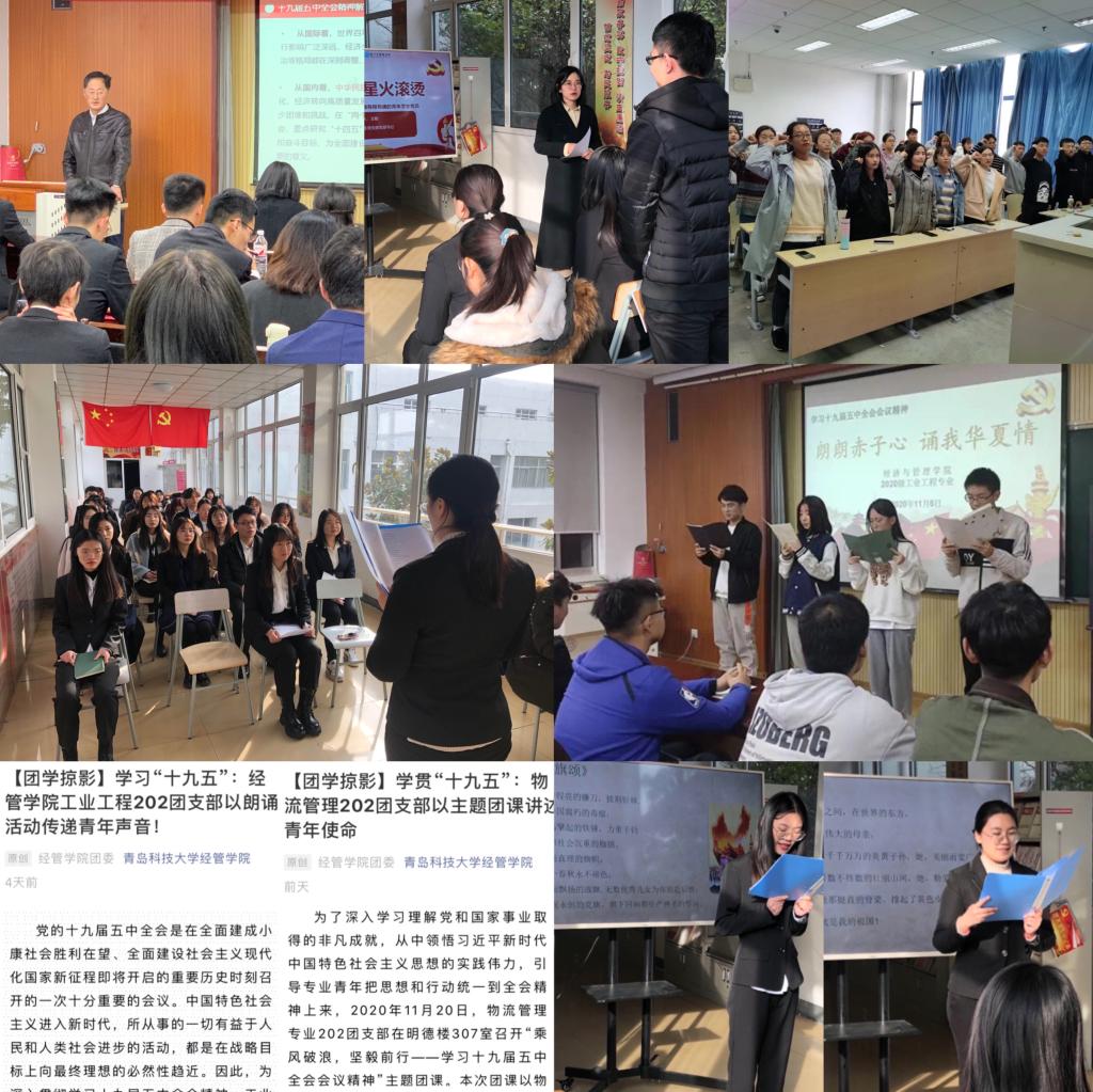 mg冰球突破豪华版网址党团互联,拓宽组织育人及实践育人双重体系。院党委书记作《十九届五中全会精神解读》主题团课,启发全体青年坚持正确政治导向,自觉做到自我价值实现与国家发展同向而行。党支部开展《厚植信仰、星火滚烫》主题党课,以全会内容为根本为广大党员开展理想信念教育;开展“传承红色经典、诵读红色精神”主题党日活动,挖掘十九届五中全会蕴含的红色教育资源,发挥“红色朗读者”的活动品牌效应,构建党建育人模式一脉相承。各团支部开展“学贯十九五”系列活动,以“朗朗赤子心,诵我华夏情”主题团日活动、《十九届五中全会与我》主题团课活动、“我的使命我的团”主题演讲活动、十九届五中全会主题征文活动等,引导学生自我教育、自我管理、自我服务,全面实现十九届五中全会精神入脑入心。