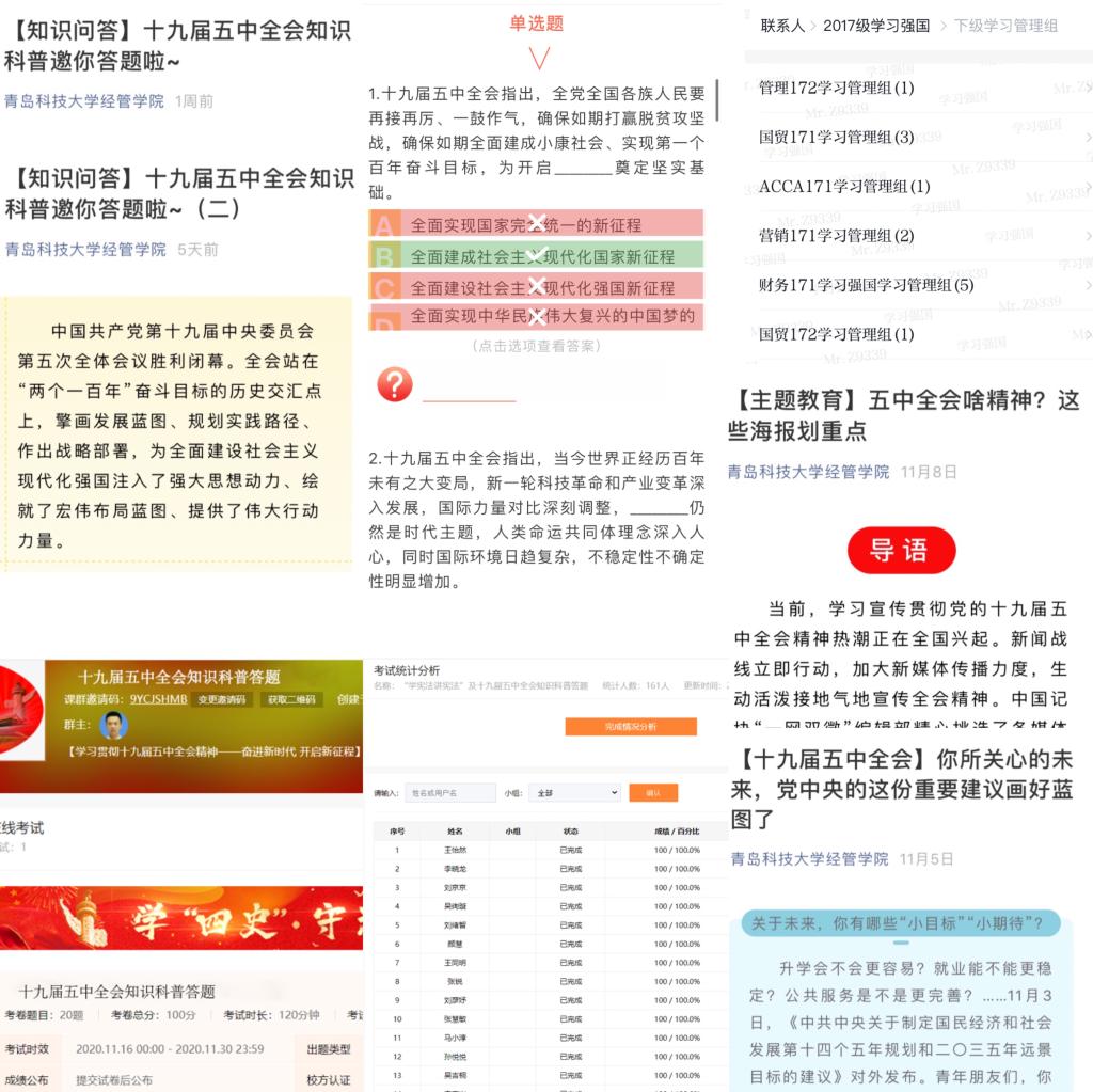 mg冰球突破豪华版网址利用学习强国、学院官网、官微等平台,强化网络育人输出,构建网格化教育格局。利用学习强国班级群实现“联学”,以教师引导与学生自学的方式,把握强国教育资源,深化交流研讨,确保内化于心。利用学院公众号平台实现“点学”,通过推送十九届五中全会“规划蓝图”,发布十九届五中全会热点要闻等系列“主题教育”,引导学生了解全会重点热点,心系发展难点、关注青年工作结合点。利用易班及公众号平台实现“精学”,组织十九届五中全会线上答题竞赛系列活动及“关键词”系列教育,引导学生聚焦全会细节,以喜闻乐见的方式,学细学精全会精神。
