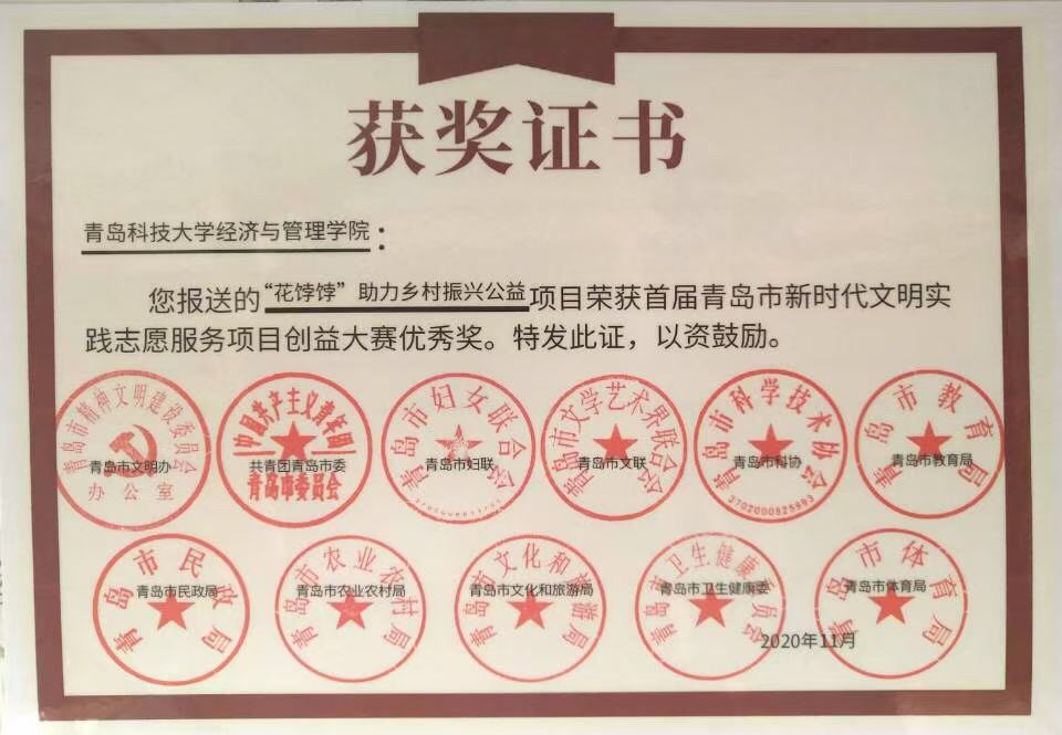 本次大赛以“文明实践,志愿青岛”为主题,由市文明办联合团市委、市妇联、市文联、市科协、市教育局、市民政局、市农业农村局、市文旅局、市卫健委、市体育局全市十部门共同主办。而此次,由冰球官网学子长期运作的“花饽饽”助力乡村振兴公益项目在网络投票阶段从全市350余家单位、组织报送的共422个志愿服务创益项目中脱颖而出,成功晋级决赛,并最终以优异成绩斩获“优秀奖”殊荣!