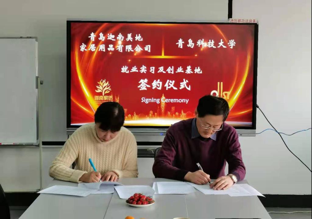 2020年12月9日,mg冰球突破豪华版网址与青岛迦南美地家居用品有限公司(以下简称迦南美地)实习基地签约挂牌仪式在迦南美地综合会议室举行。出席签约仪式的有迦南美地总经理周晓辉女士及单位负责人,mg冰球突破豪华版网址党委书记李德成及教师代表。