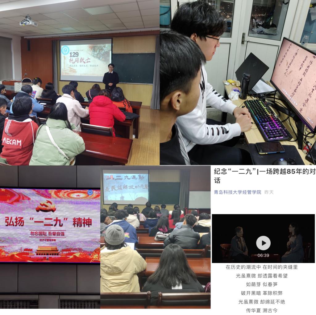 mg冰球突破豪华版网址组织各年级各专业陆续开展“纪念‘一二·九’”主题团日活动,以爱国教育为主线,各团支部组织团员观看《我和我的祖国》、《集结号》、《八佰》等红色影片,片中革命先烈英勇奋斗、至死不渝的品质,让同学们受到了心灵的净化和精神的洗礼。此外,学院号召学生观看学习“一二·九”运动党史课堂、微视频等,以集中观看与自发组织的形式,真切了解“一二·九”运动中青年学生所体现的壮志满怀。同时,学院通过微信和QQ官方平台展开党史微教育,并通过学院电子屏幕循环宣传带动,落实爱国主义教育着力点,强化立德树人实效性。