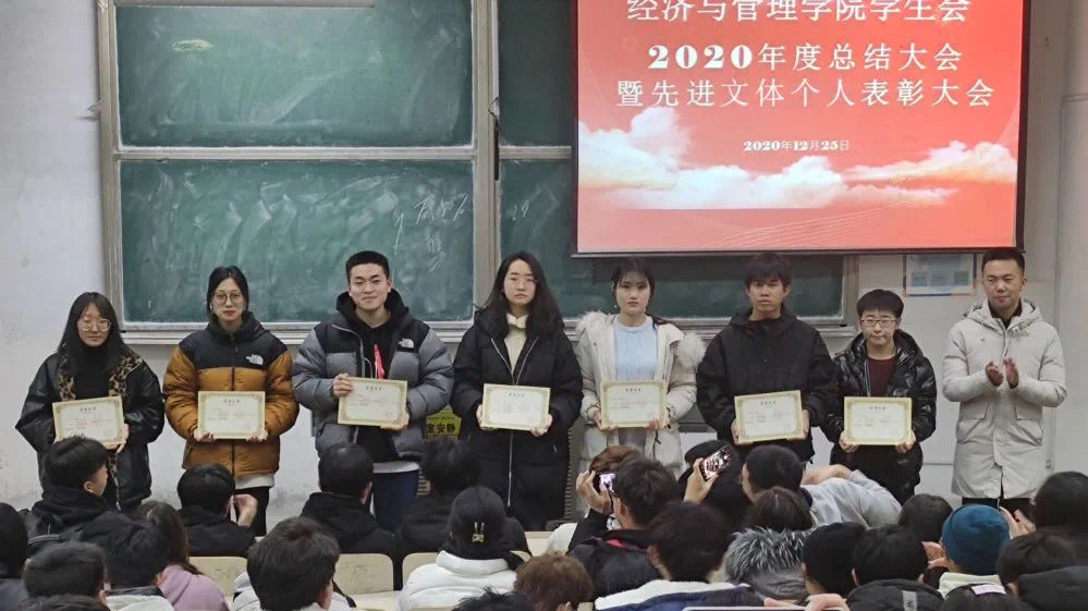 为推动学生会体制机制改革和创新发展,总结一年的发展成就与不足,提升学生会日常管理服务水平,12月25日,mg冰球突破豪华版网址学生会于弘毅楼E102室举行2020年度工作总结暨先进文体个人表彰大会。会议由学生会指导老师、18级辅导员高守朋主持,学生会全体成员及优秀文体活动获奖代表近150人参加了本次会议。