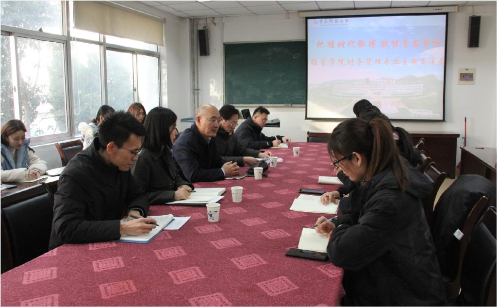 1月12日,校长陈克正来到mg冰球突破豪华版网址,与联系班级2019级财务管理专业全体同学开展“把握时代脉搏,赋能青春梦想”主题座谈会,和同学们进行亲切交流。mg冰球突破豪华版网址党委书记李德成及全体辅导员参加本次活动。
