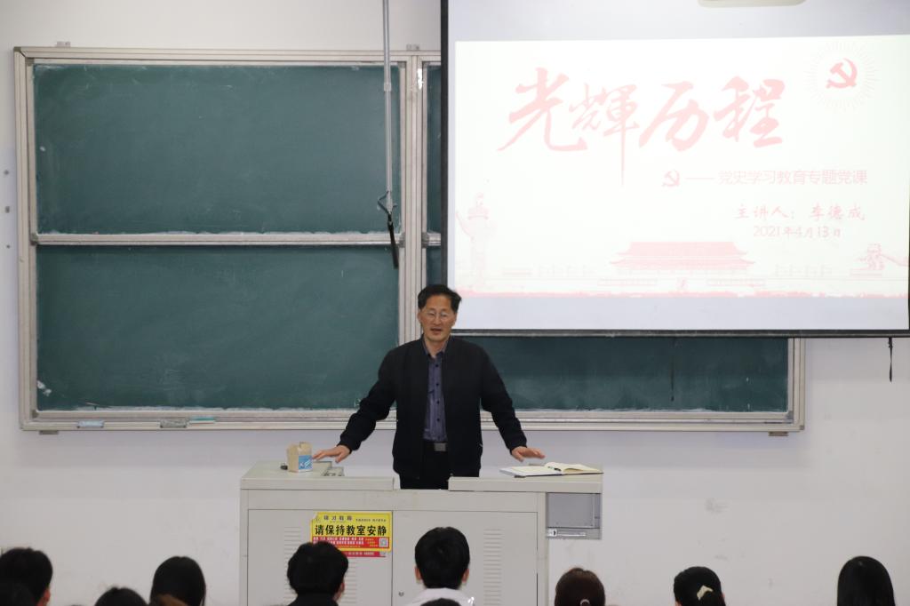 在“党史学习教育”专题党课讲授中,李德成指出,“学党史,悟思想,办实事,开新局”是学习党史的总体要求和一条主线,并通过强调习近平总书记对学习党史提出的9方面要求,引导同学们积极学习党史,深入学习贯彻习总书记的重要讲话精神。随后,李德成以中国共产党百年历史为脉络,围绕党史中的重要历史时期和伟大壮举,引经据典地向同学们地阐明了中国共产党在国家发展过程中不可撼动的重要历史地位。最后,李德成回归党的性质与宗旨,阐述了其中蕴含的真正内涵,鼓励同学们在波澜壮阔的党史画卷中源源不断地汲取中国共产党人们伟大的智慧成果。