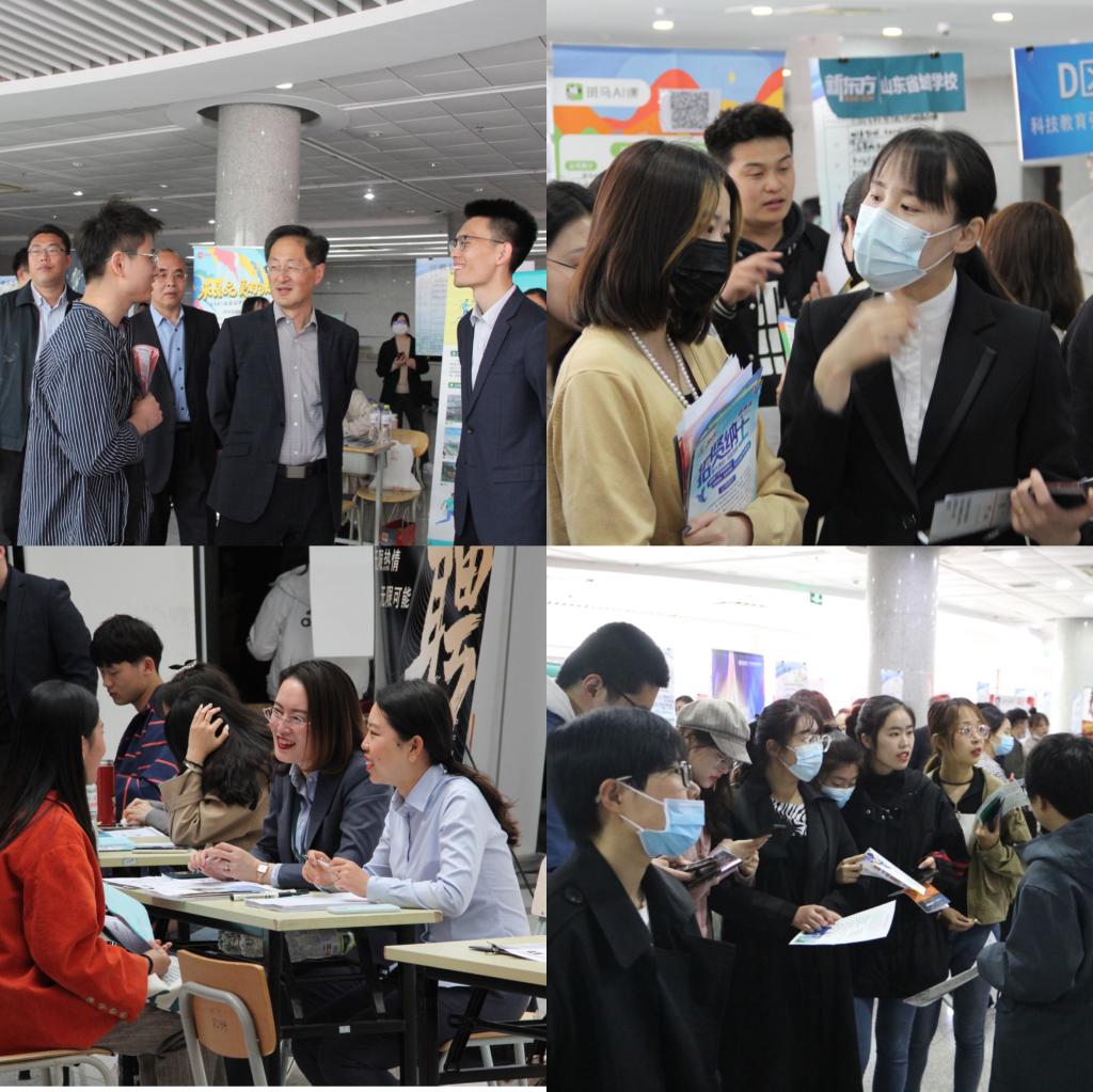 4月19日,“职在必得,犇向未来”mg冰球突破豪华版网址2021届毕业生专场招聘会于mg冰球突破豪华版网址崂山校区图书馆二楼大厅成功举办。校党委常委、副校长丁林莅临现场指导工作,深入现场和企业面对面沟通交流。