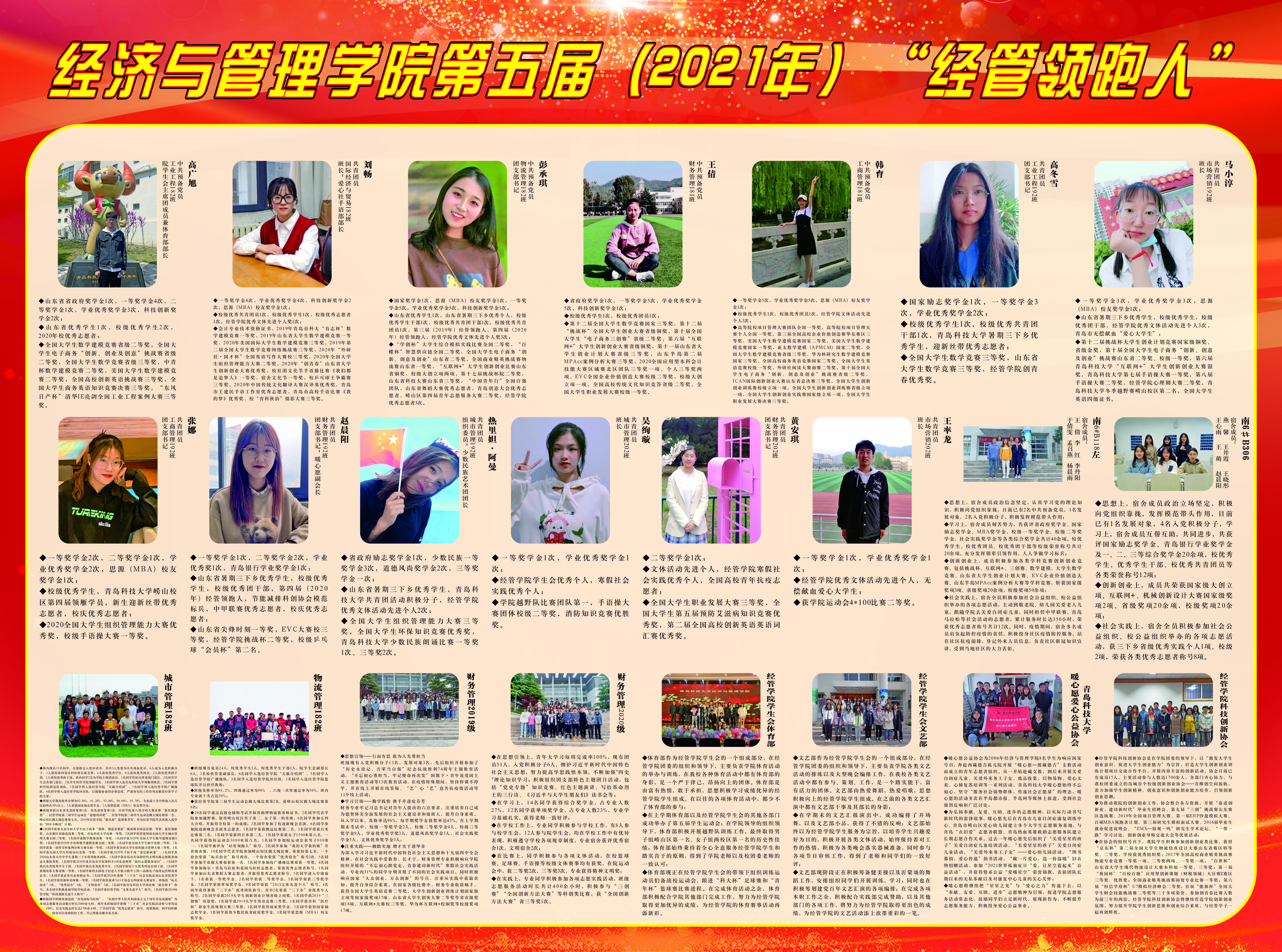 为迎接中国共产党建党100周年,引导广大青年学子坚定理想信念,厚植爱国情怀,做有理想、有责任,有担当的新时代青年,mg冰球突破豪华版网址特开展“展现青春风采,谱写奋斗乐章“之寻找“第五届(2021年)经管领跑人”活动。