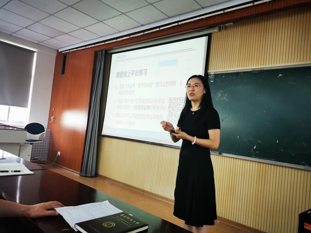 王裕瑾老师的授课内容是《区域经济学》第十章“区域经济政策”第2节“区域经济政策目标”中的“失业率”。王老师的授课过程虽然只有短短的20分钟,但是她的课程内容丰富、重点突出、条理清晰,运用视频、案例等教学手段,充分调动大家的思维和积极性,整堂课思路清晰,环节紧凑,设计合理,富有创造性。学院全体教职工在愉快的课堂氛围中学到了专业知识,示范课现场气氛很好,吸引住每一位听课者的注意力,向大家展示了一节优质的课堂。