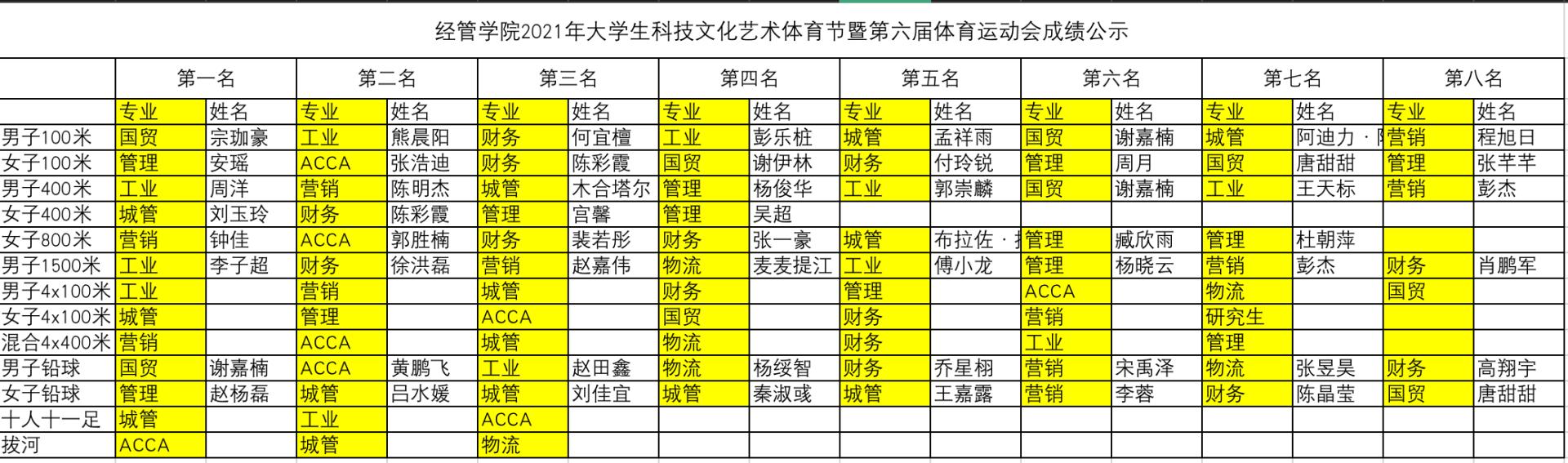 经过一上午的激烈角逐,本届运动会城市管理专业、工业工程专业、工商管理专业荣获团体前三名,市场营销专业荣获“优秀组织奖”,财务管理专业、财务ACCA专业、国际经济与贸易专业、物流管理专业、研究生代表队荣获“精神文明奖”。