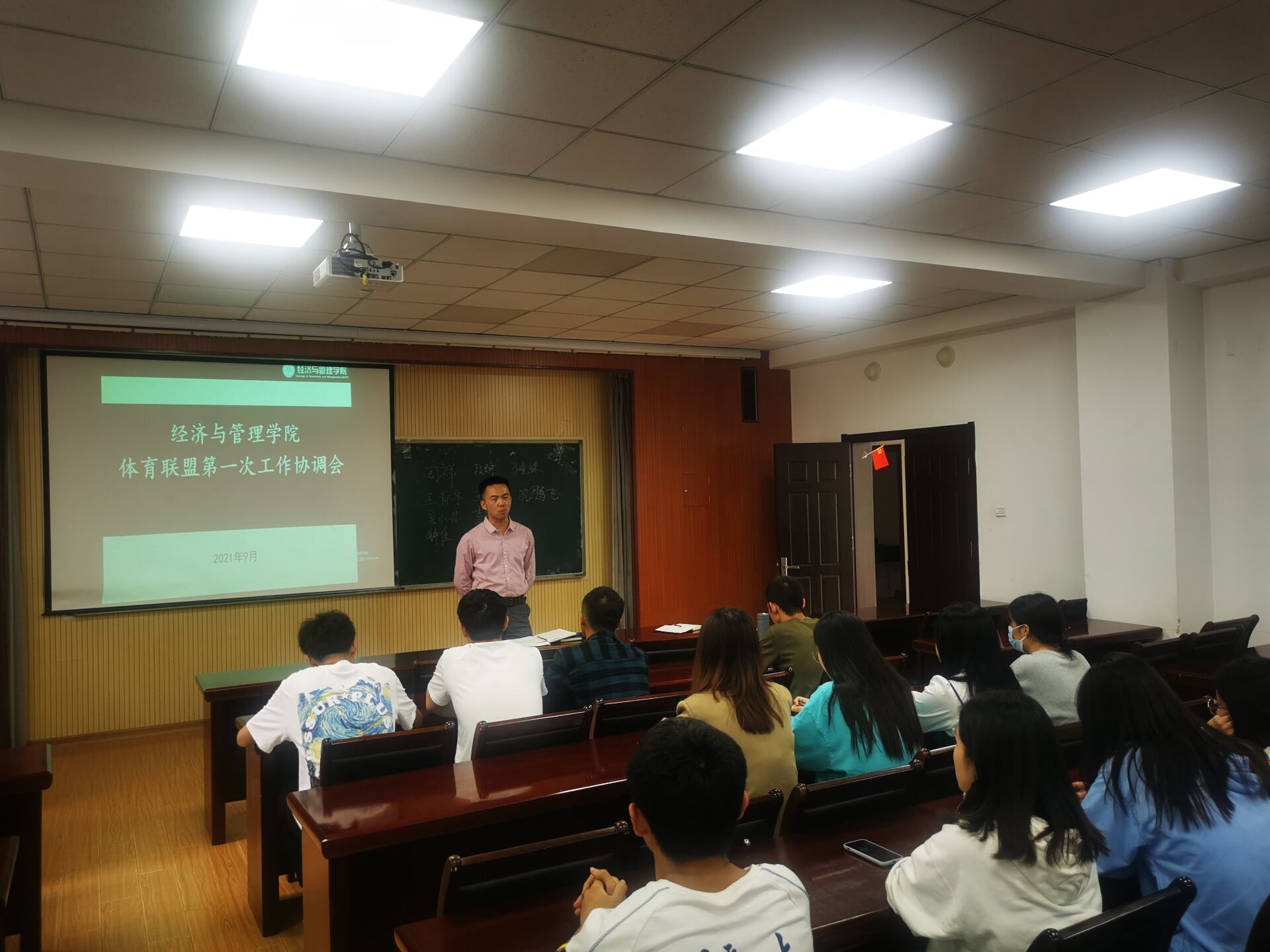 9月28日下午,mg冰球突破豪华版网址体育联盟第一次工作协调会议在经管楼419会议室召开,联盟指导老师高守朋,学生会体育部全体成员、各协会负责人参与会议。
