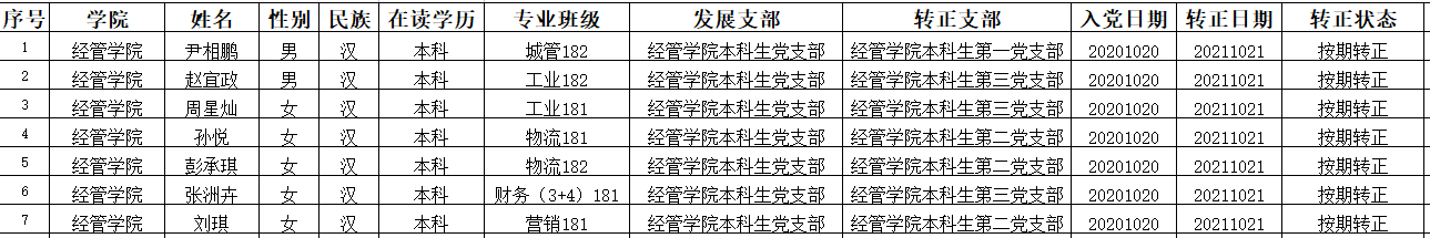 根据《中国共产党章程》和《中国共产党发展党员工作细则》及学校党委《关于发展学生党员工作的意见》(青科大党字〔2014〕77号)文件要求,mg冰球突破豪华版网址本科生第一、第二、第三党支部于2021年10月21日召开预备党员转正大会讨论尹相鹏等7位同志的转正问题,同意以上同志按期转为中共正式党员,现将该7名同志情况予以公示。公示期为2021年10月21日至2021年10月28日。如有异议,请于公示期内到mg冰球突破豪华版网址党委反映。