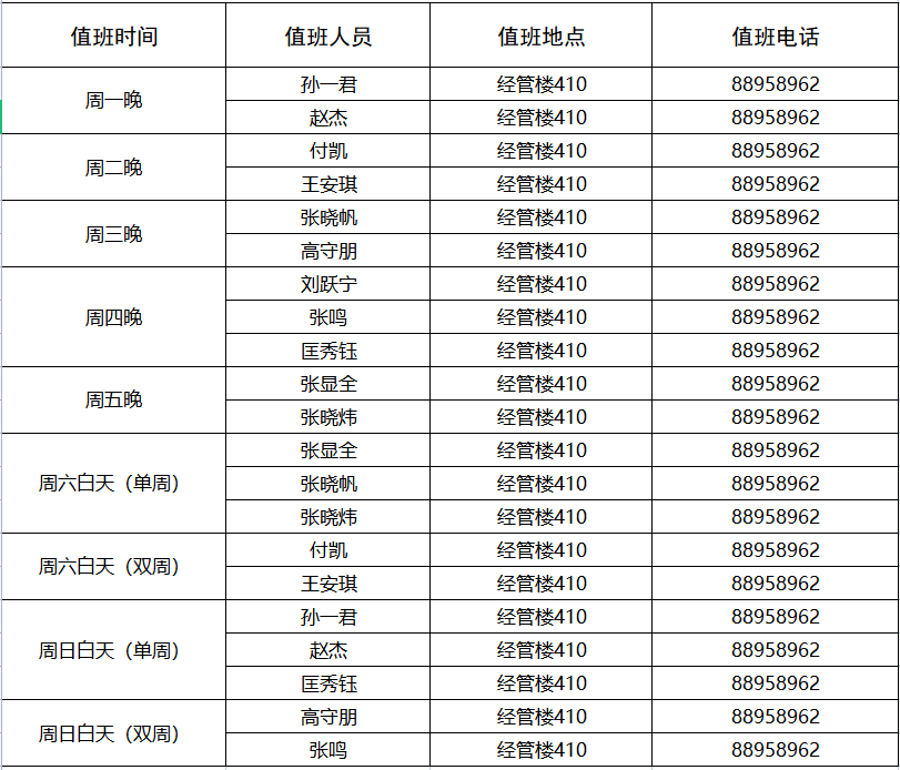mg冰球突破豪华版网址学工队伍2021-2022学年第二学期常态化值班安排表