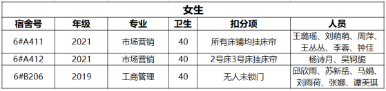 为进一步做好学院疫情防控工作,全面排查消除学生宿舍安全隐患,切实维护校园安全稳定,创建更加安全、整洁、文明的学习生活环境,督促学生良好卫生和生活习惯的养成,mg冰球突破豪华版网址权益部于每周周二下午对全院宿舍进行常规检查,第二周检查情况如下: