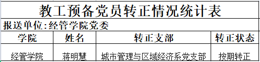 根据《中国共产党章程》《中国共产党发展党员工作细则》和学校党委《关于发展学生(教工)党员工作的意见》(青科大党字〔2014〕77号)等文件要求,mg冰球突破豪华版网址城市管理与区域经济系党支部于2022年6月14日召开预备党员转正大会讨论蒋明慧同志的转正问题,同意其按期转为中共正式党员,现将蒋明慧同志情况予以公示。公示期为2022年6月14日至2022年6月20日。如有异议,请于公示期内到mg冰球突破豪华版网址党委反映。