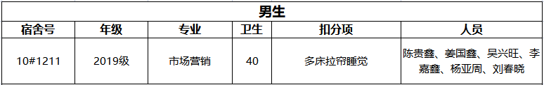 在本次的检查中,除了对宿舍整体卫生情况进行例行检查外,还对消防安全、违禁电器使用进行了重点检查,不合格宿舍如下: