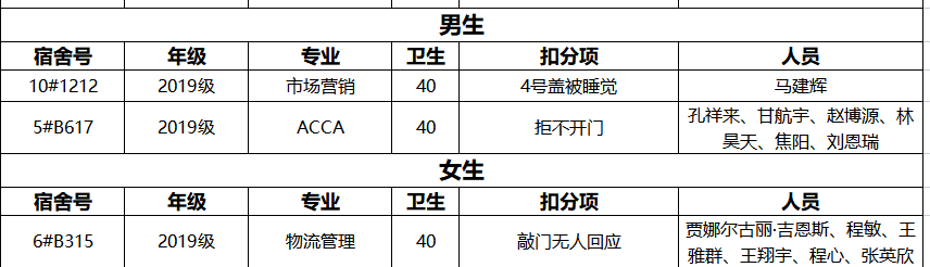 卫生检查结果及扣分细则请见附件,请各年级对照问题监督好不合格宿舍的整改。