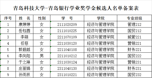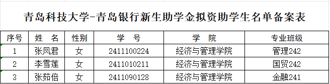 【公示】mg冰球突破豪华版网址2024年度青岛银行奖助学金名单公示