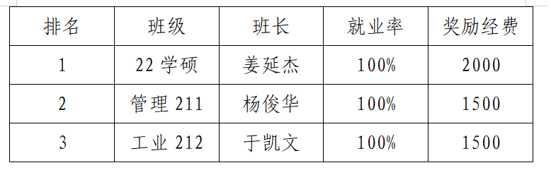 根据青科大经管字〔2024〕14号《mg冰球突破豪华版网址就业工作激励办法(试行)》的考核奖励要求,现对学院毕业生班集体奖励公示如下: