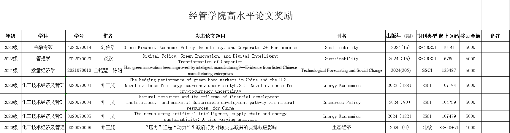 学生一作高水平论文奖励公示