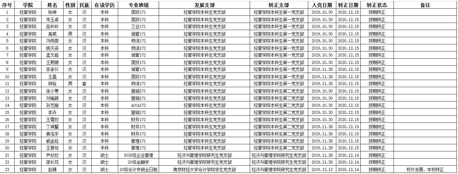 根据《中国共产党章程》和《中国共产党发展党员工作细则》及学校党委《关于发展学生党员工作的意见》(青科大党字〔2014〕77号)文件要求,mg冰球突破豪华版网址学生党支部于2020年12月14日、15日召开预备党员转正大会讨论张琳等23位同志的转正问题,同意以上同志按期转为中共正式党员,现将该23名同志情况予以公示。公示期为2020年12月15日至2020年12月21日。如有异议,请于公示期内到mg冰球突破豪华版网址党委反映。
