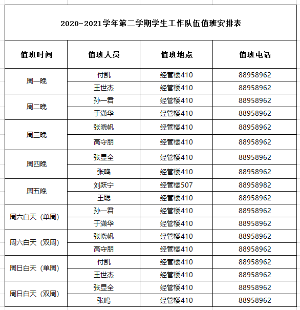 mg冰球突破豪华版网址学工办(团委)常态化值班安排表