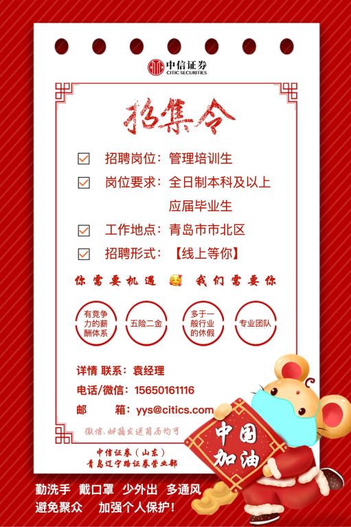 中信证券(山东)青岛辽宁路证券营业部2020招聘