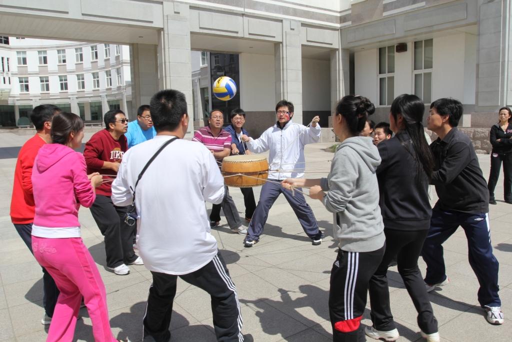 2011级MBA学员组成“亮剑队”、“闪电队”、“雄霸队”和“猎人队”四支队伍,进行激烈角逐。在海尔国际培训中心素质拓展训练师的带领下,全体学员参加了风采展示、绑腿竞速、鼓动人心、兔子舞、发传真、移甜圈、打绳结等多项游戏。
