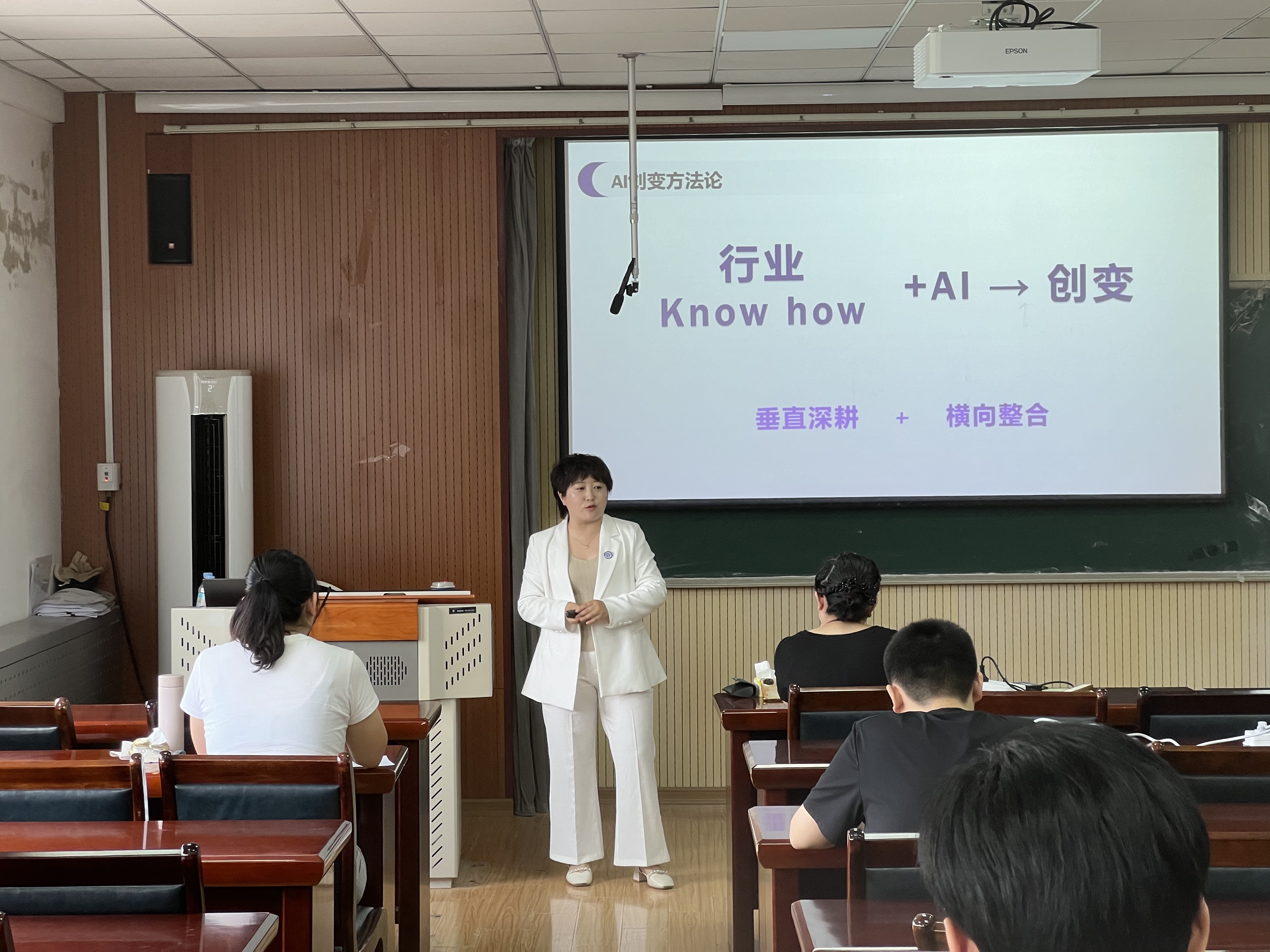6月7日上午,“AI时代人才竞争力:机之力×心之力融合密码”专题讲座在mg冰球突破豪华版网址504会议室成功举办,本次讲座由青岛智尚无忧公司创始人、AI应用转化中心负责人江颖老师授课,MBA任课教师赵宏霞教授主持,2024级MBA学员参加。