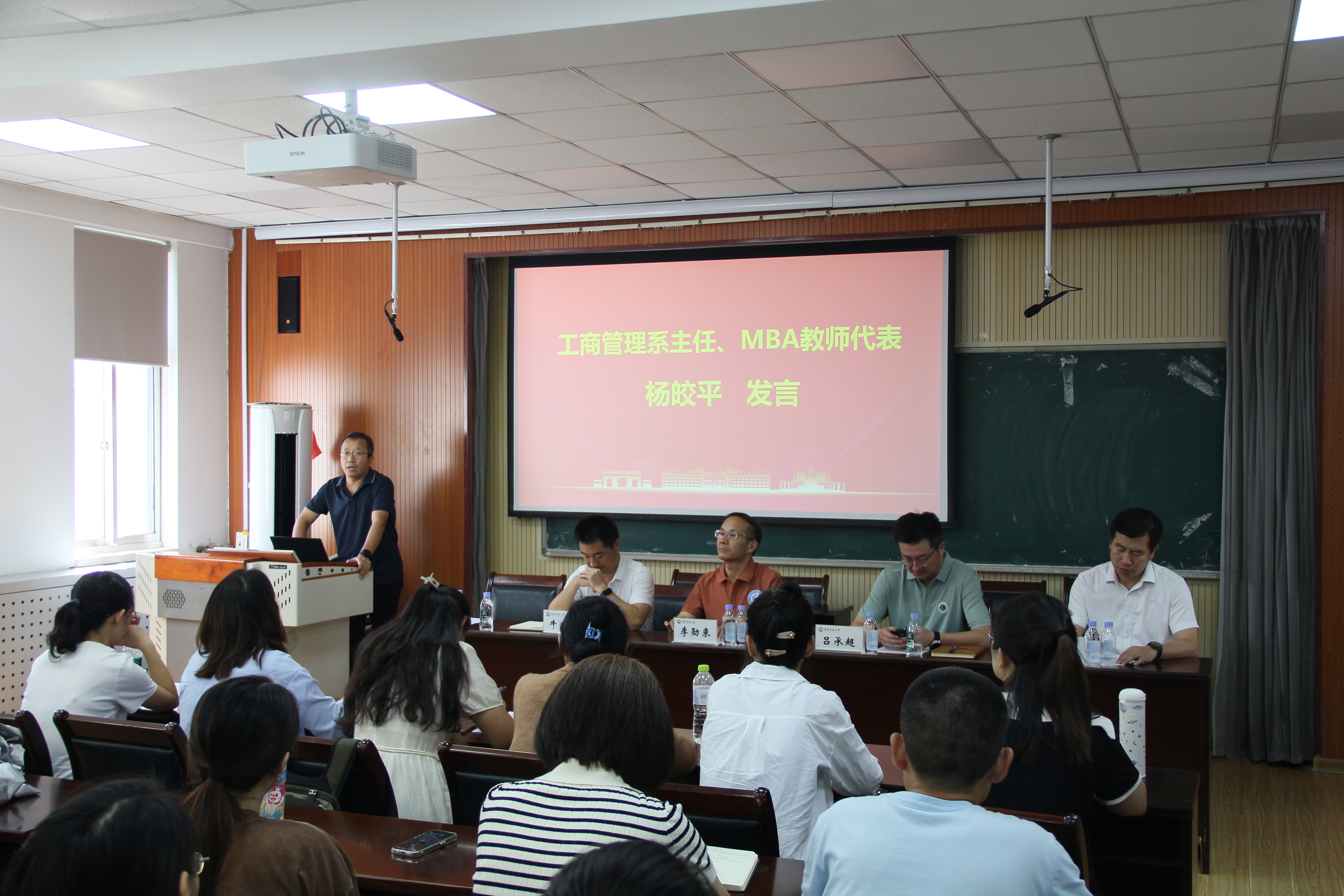 MBA教师代表杨皎平教授对全体新生的备考付出表示了肯定,并结合自己的教学经验嘱托全体新生要认真学习理论、努力收获知识。杨教授强调:MBA不仅是思想碰撞的殿堂,更是发展友谊的桥梁,可能一次不经意的交流,就促成一个商业合同,不经意的一句话,就能找到商业机会,希望全体新生能加倍珍惜两年的求学时光。