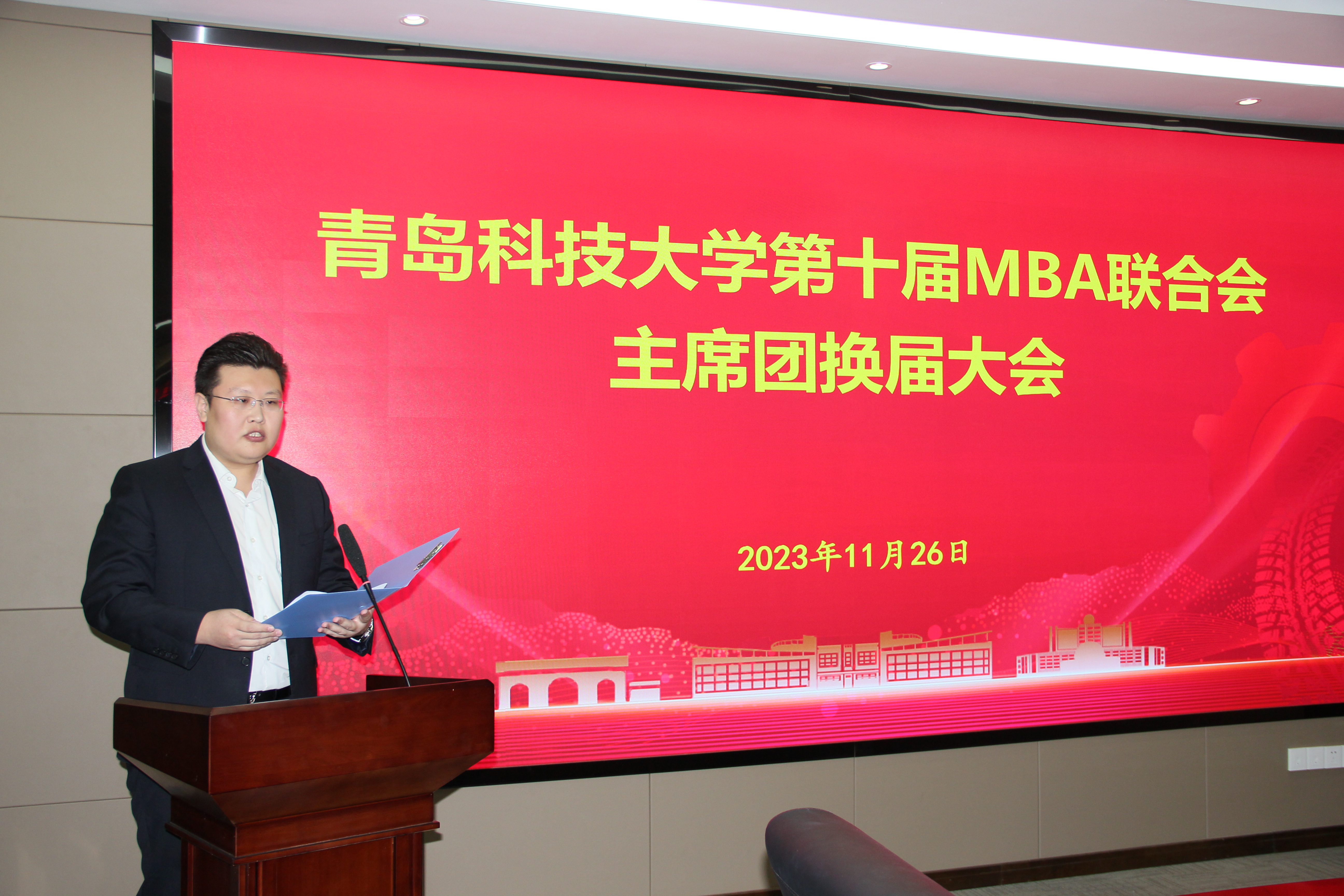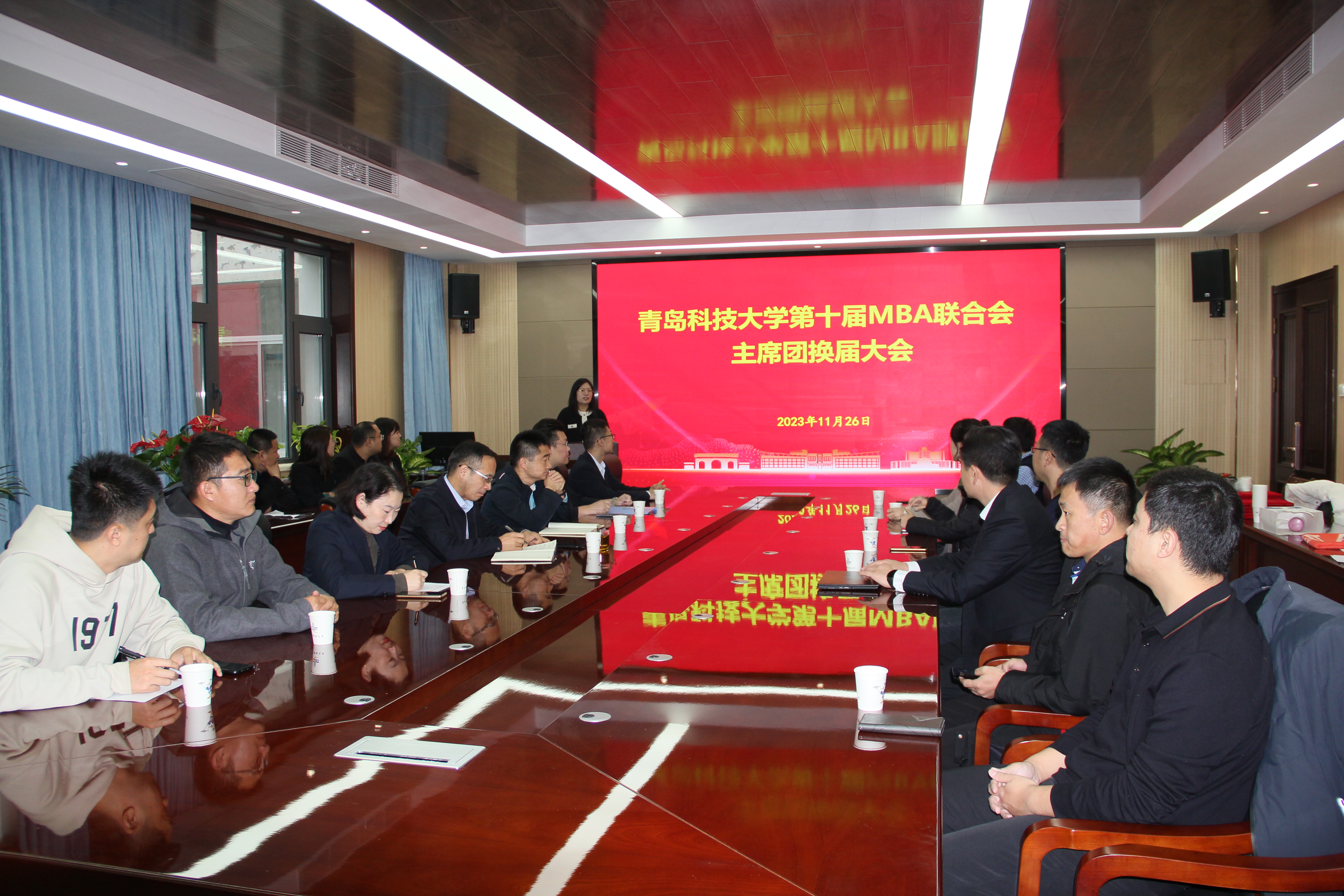 11月26日,mg冰球突破豪华版网址第十届MBA联合会主席团换届大会在mg冰球突破豪华版网址313会议室顺利举行。mg冰球突破豪华版网址院长、MBA教育中心主任李勋来出席会议并致辞,学院党委副书记兼副院长牛宝卫,MBA教育中心教师代表,往届MBA联合会校友代表,2022级、2023级MBA学员代表参加了会议。会议由MBA教育中心马燕老师主持。