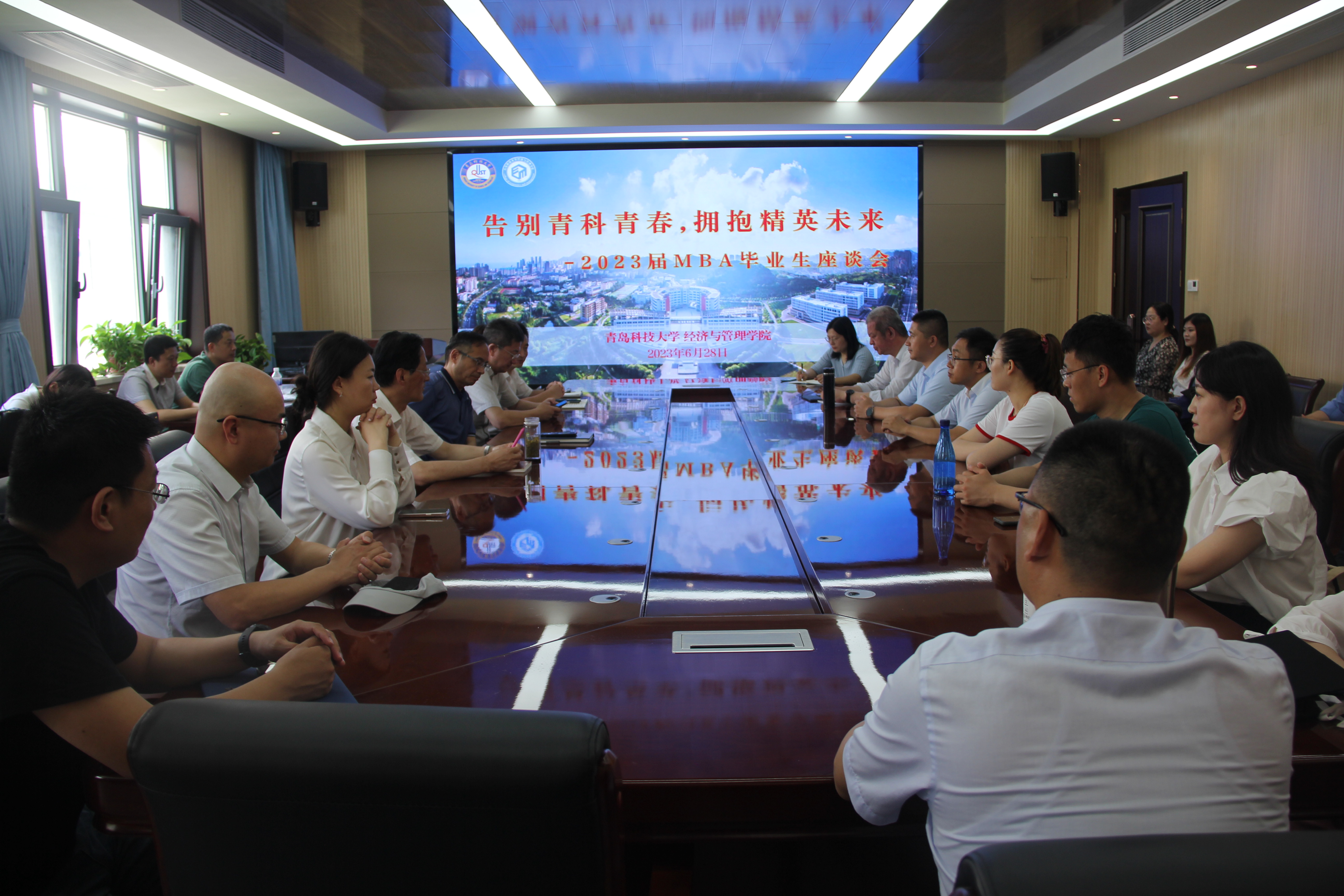 6月28日上午,“告别青科青春 拥抱精英未来”2023届MBA毕业生座谈会在mg冰球突破豪华版网址313会议室顺利举行。mg冰球突破豪华版网址院长兼MBA教育中心主任李勋来、mg冰球突破豪华版网址党委书记李德成、导师代表以及2023届MBA毕业生参加座谈会。