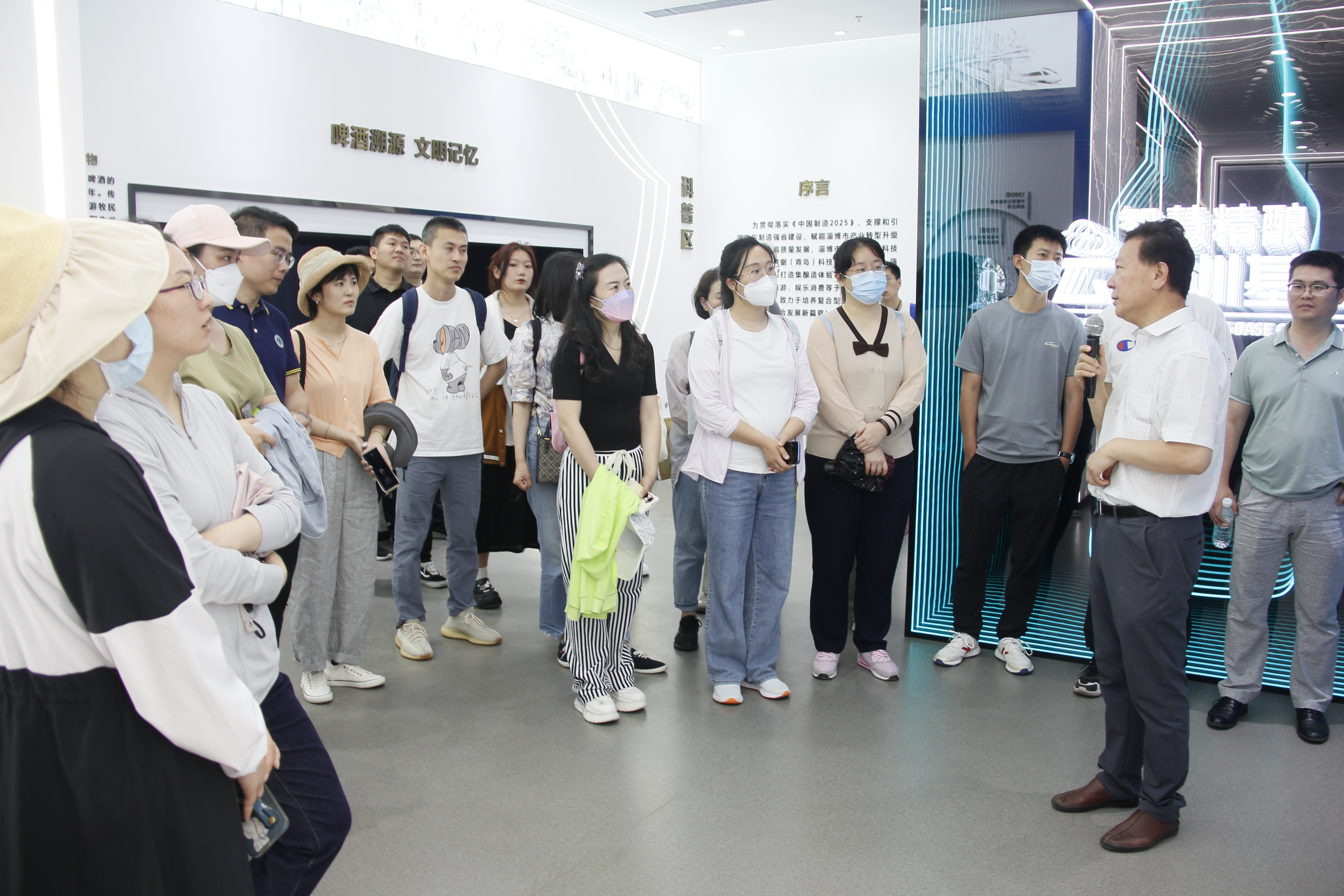 在mg冰球突破豪华版网址淄博教科产融合基地,学员们有序参观基地各个实验场景,听取基地负责人关于基地建设发展情况介绍,感受mg冰球突破豪华版网址在产教融合发展中取得的瞩目成就;在啤酒精酿项目现场,mg冰球突破豪华版网址王家林教授详细地为大家讲述啤酒精酿技术发展历程,以及啤酒生产工艺流程,同学们在新鲜的精酿啤酒中,品味青岛啤酒工业的百年历史。