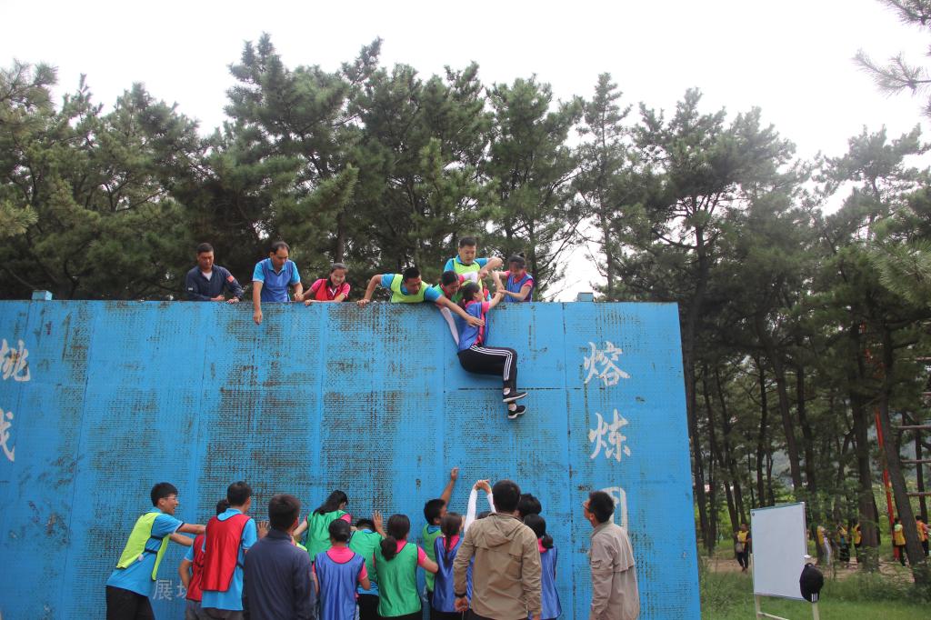 拓展从破冰和团队文化建设开始,全部学员分成精英、巅峰、稳赢、拔刺四支队伍,互相竞争合作,学员们积极挑战自我,挖掘自身潜力,同时注重团队合作,勇于承担责任,重重困难,顺利地完成了 “鼓动人心”,“有轨电车”,“达芬奇密码”,“逃生墙等一系列拓展挑战项目。