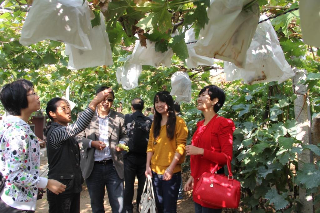 2012年10月21号上午,mg冰球突破豪华版网址2011级MBA,2012级MBA学员到平度市大泽山生态葡萄园进行考察,参观。大泽山每年葡萄成熟时,都有一次葡萄节,远近闻名。学员们在葡萄园里采摘并品尝葡萄,品评庄园主人自酿的葡萄酒,葡萄甘甜流汁,美酒酸甜醇厚,秋风徐来,满目大泽山秋色尽在眼底。品尝葡萄过程中,学员们听葡萄园主介绍葡萄的种类,养植以及葡萄酒的酿制过程。学员们纷纷表示受益匪浅。
