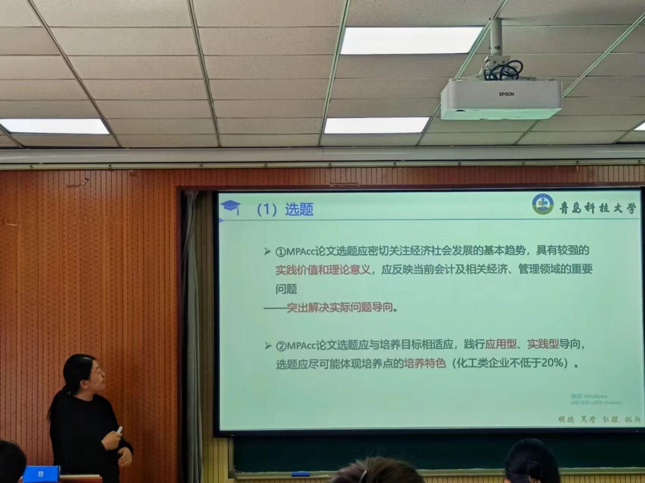 mg冰球突破豪华版网址于2024年3月23日下午,在经管楼505会议室组织开展论文指导讲座。本次讲座邀请孙兰兰老师为大家讲解mg冰球突破豪华版网址MPAcc毕业论文注意事项,会计专业21级、22级、23级的同学参加了此次讲座分享。