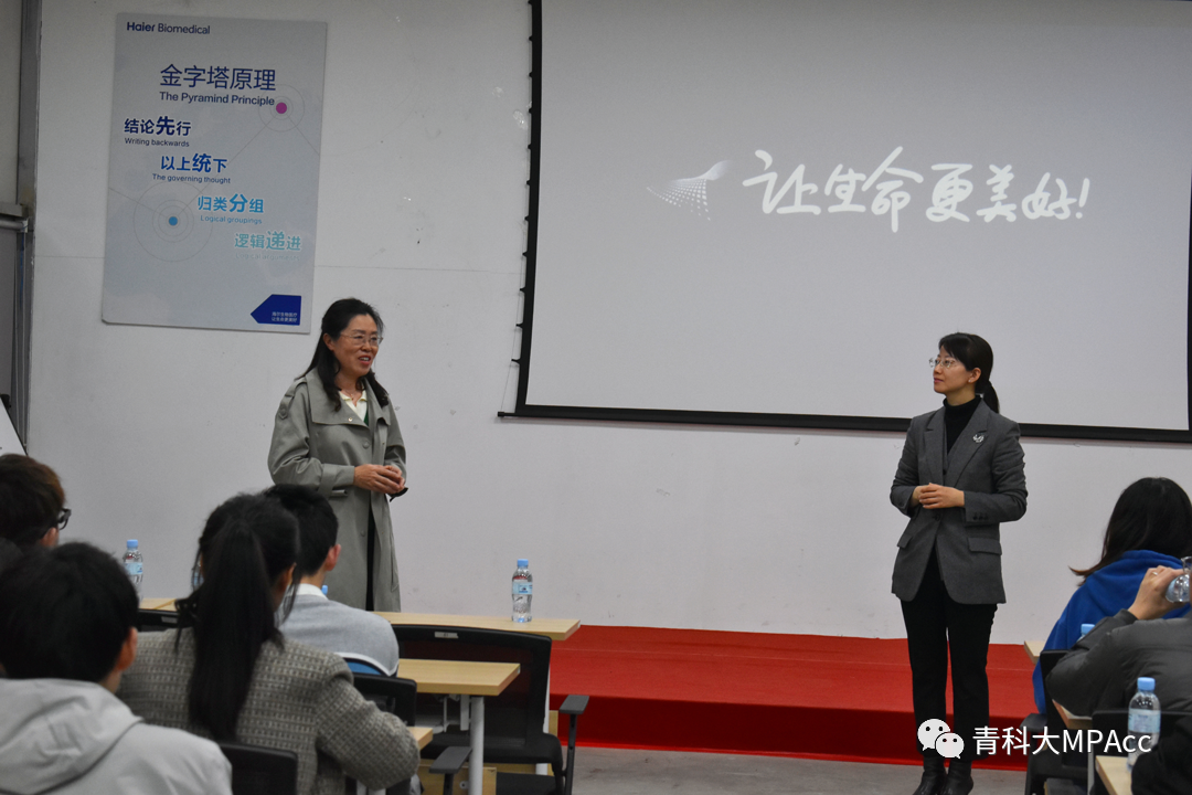 报告会最后,张占贞老师做了简要总结,张老师指出一个企业持续发展的理念就是要做好企业的本职工作,只要企业经营得好,必然会得到资本市场的回报,另一个角度来讲,作为学生,要做好本职工作,才能实现自身价值的做大化。海尔生物医疗秉承诚信生态、共赢进化的精神,执行人单合一,链群合约的作风,也启示我们要诚实守信,知行合一,成就别人也是成就自己。