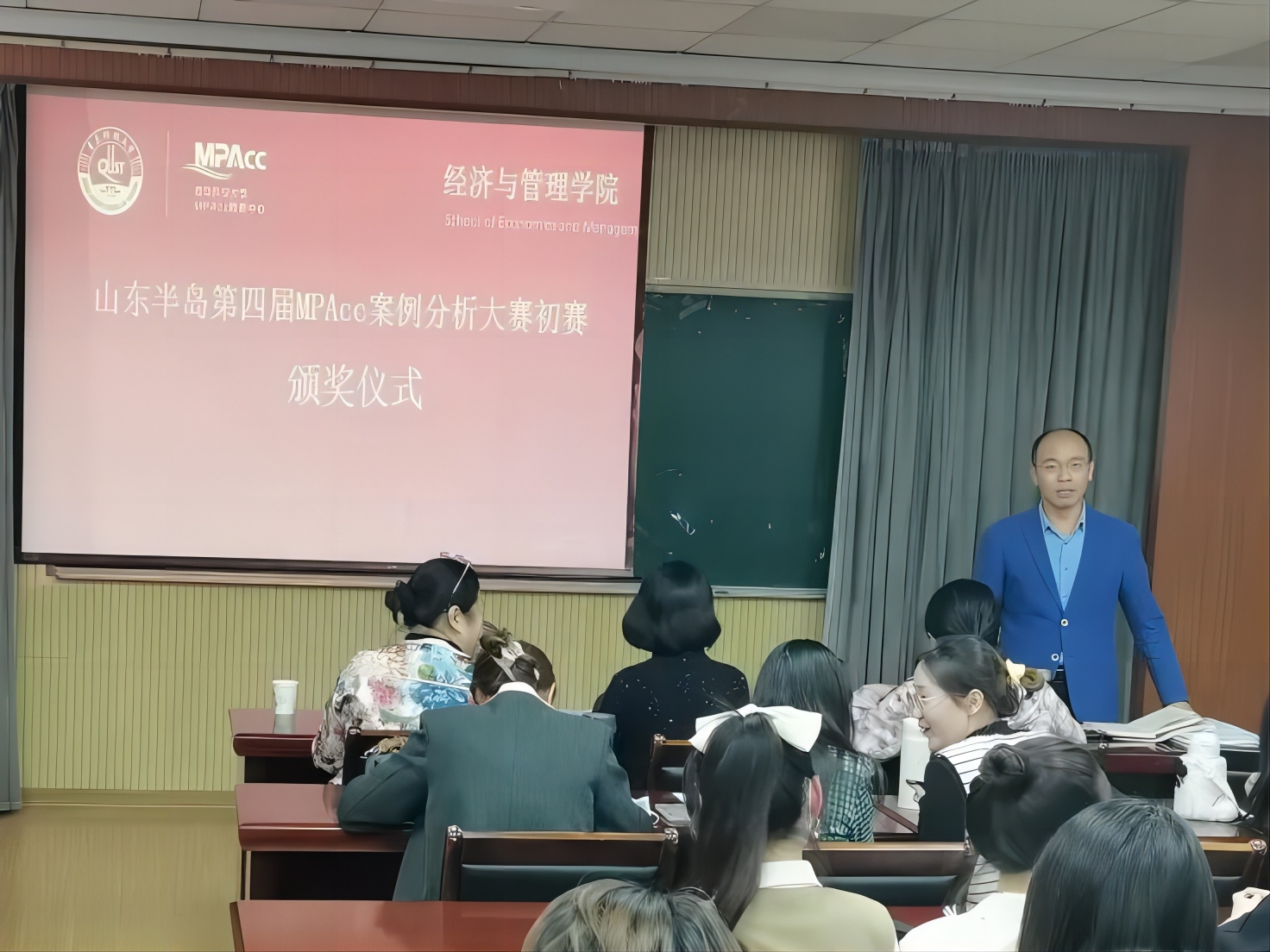 本次活动由学院MPAcc教育中心主任于培友老师主持,会计硕士导师张先敏老师、张玉老师、孙兰兰老师参加本次活动担任评委并给获奖队伍颁奖。