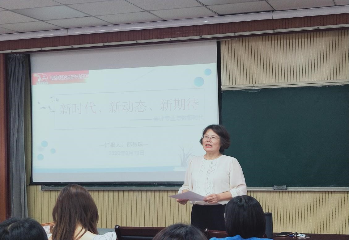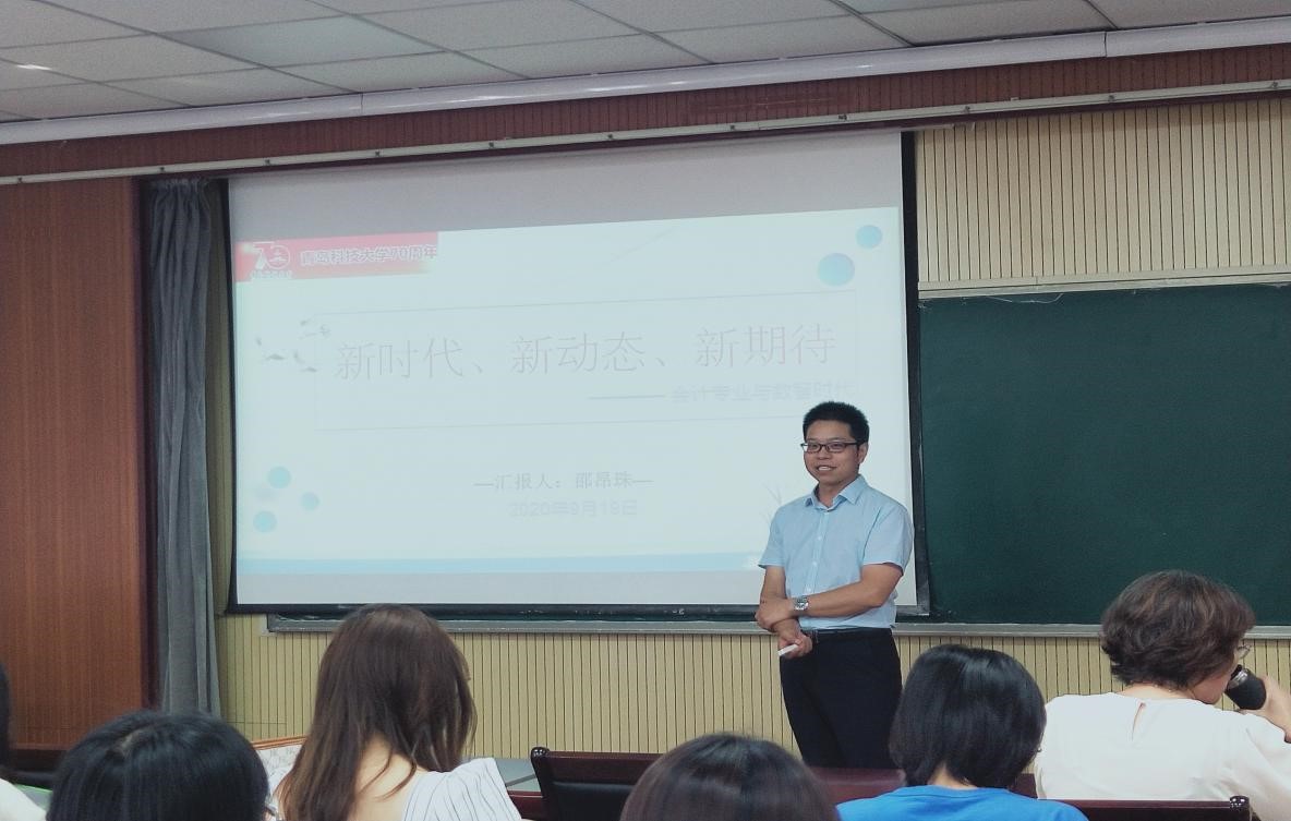 2020年9月19日9点,全国高端会计人才、mg冰球突破豪华版网址校外导师邵昂珠老师,以“新时代、新动态、新期待——会计专业与数智时代”为主题,为冰球官网师生带来了精彩的高端讲座。讲座由mg冰球突破豪华版网址MPAcc教育中心主任刘树艳教授主持,冰球官网20级会计专硕全日制和非全日制跟班全日制上课的全体学生参加。