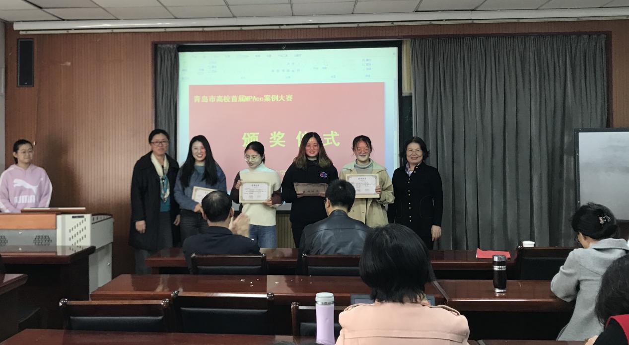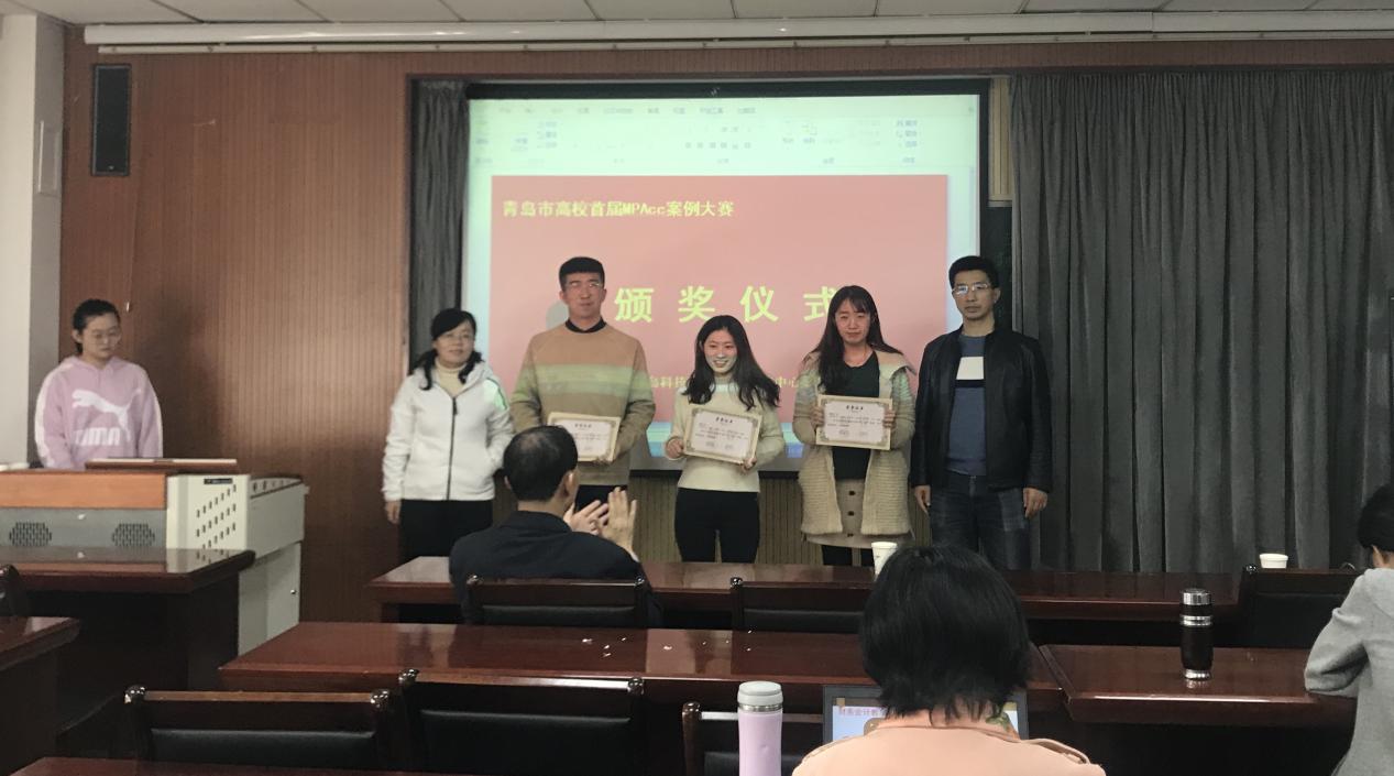 首先,由mg冰球突破豪华版网址院长王志宪教授、副院长杨友才教授和董华教授、MPAcc教育中心主任刘树艳教授以及财务与会计系主任张占贞教授为在青岛市高校首届MPAcc案例大赛初赛中获奖的队伍颁奖,其中,获得一等奖的是:skrplus队、超越队;获得二等奖的有:七喜队、星辰队、WIN了队;获得三等奖的是太阳系队、尽力而为队、非常六加一队、R战队。